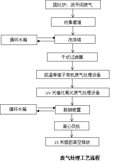 我公司采用洗滌塔預處理+干式過濾器+低溫等離子+UV光解催化+脫硝裝置主體工藝,治理貴公司氟碳生產線固化爐廢氣。